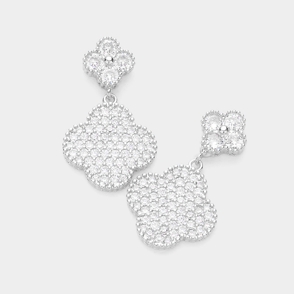 14K Gold Plated CZ Stone Paved Quatrefoil Link Dangle Earrings