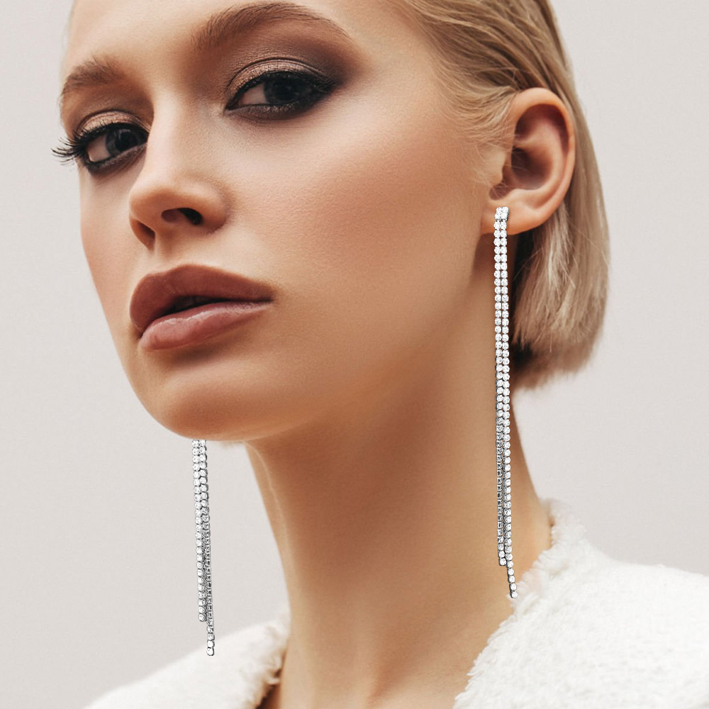 Marquise Stone Cluster Embellished Dangle Evening Earrings