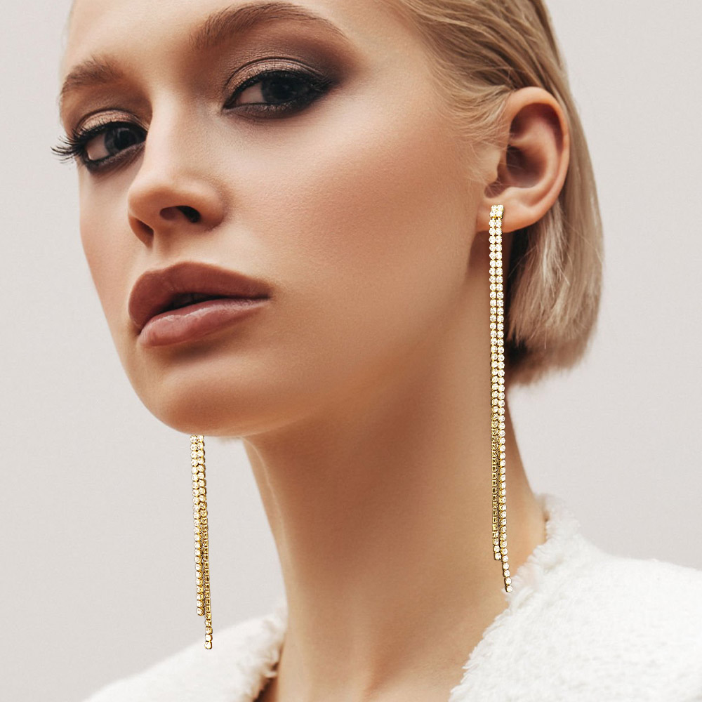Flower Teardrop Stone Cluster Dangle Evening Earrings