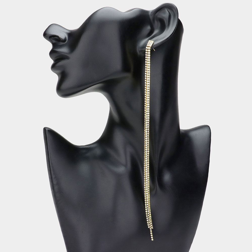 3-Line Mini Rhinestone Long Earrings