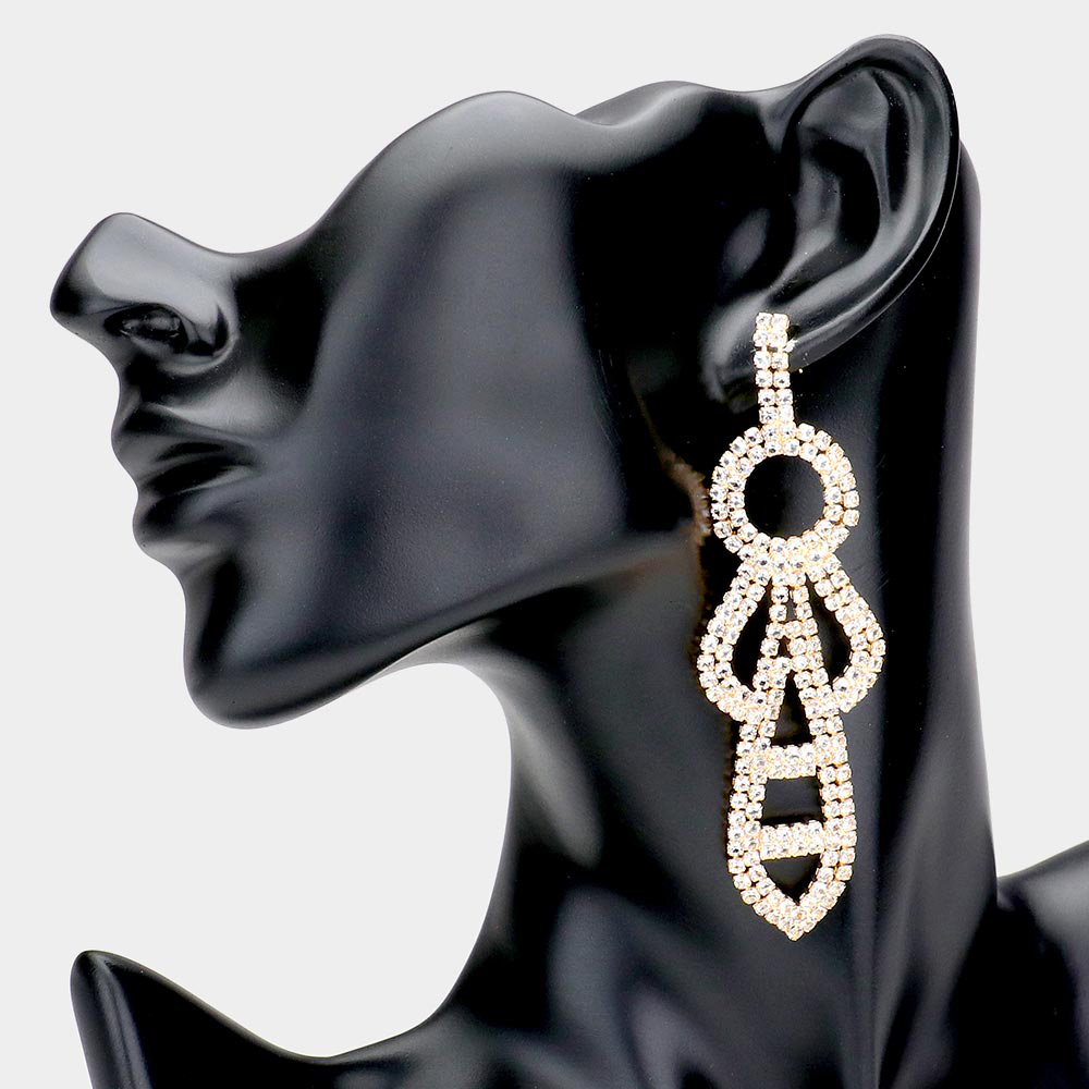 Twisted Rhinestone Fringe Dangle Evening Earrings