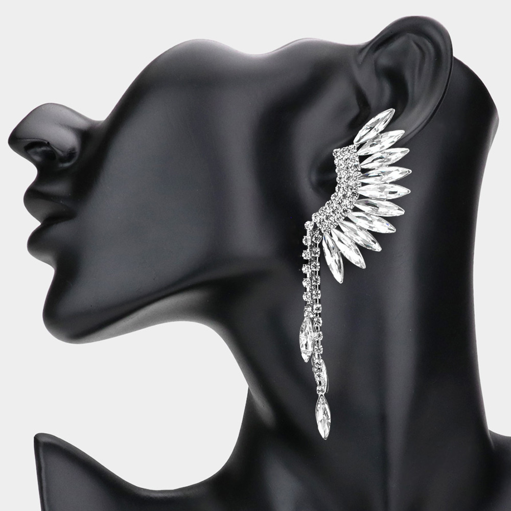 Teardrop Glass Stone Drop Stone Paved Swirl Evening Earrings