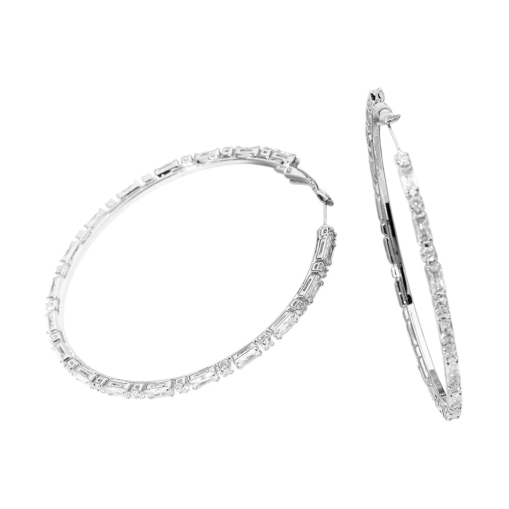 Details • Size : 3" X 3" • Omega Back • Refined and timeless, these hoop earrings feature radiant gem detailing that catches the light beautifully. Perfect for both special occasions and daily elegance, they add a touch of sophistication to any outfit. • Lead and Nickel Compliant • CZ Cubic Zirconia