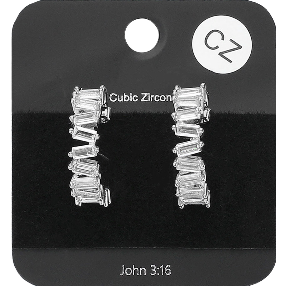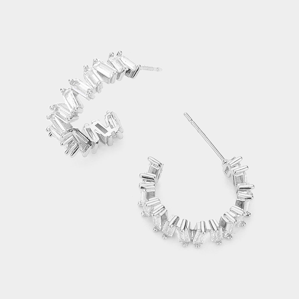 Baguette CZ Stone Hoop Evening Earrings Baguette CZ Stone Hoop Evening Earrings Baguette CZ Stone Hoop Evening Earrings