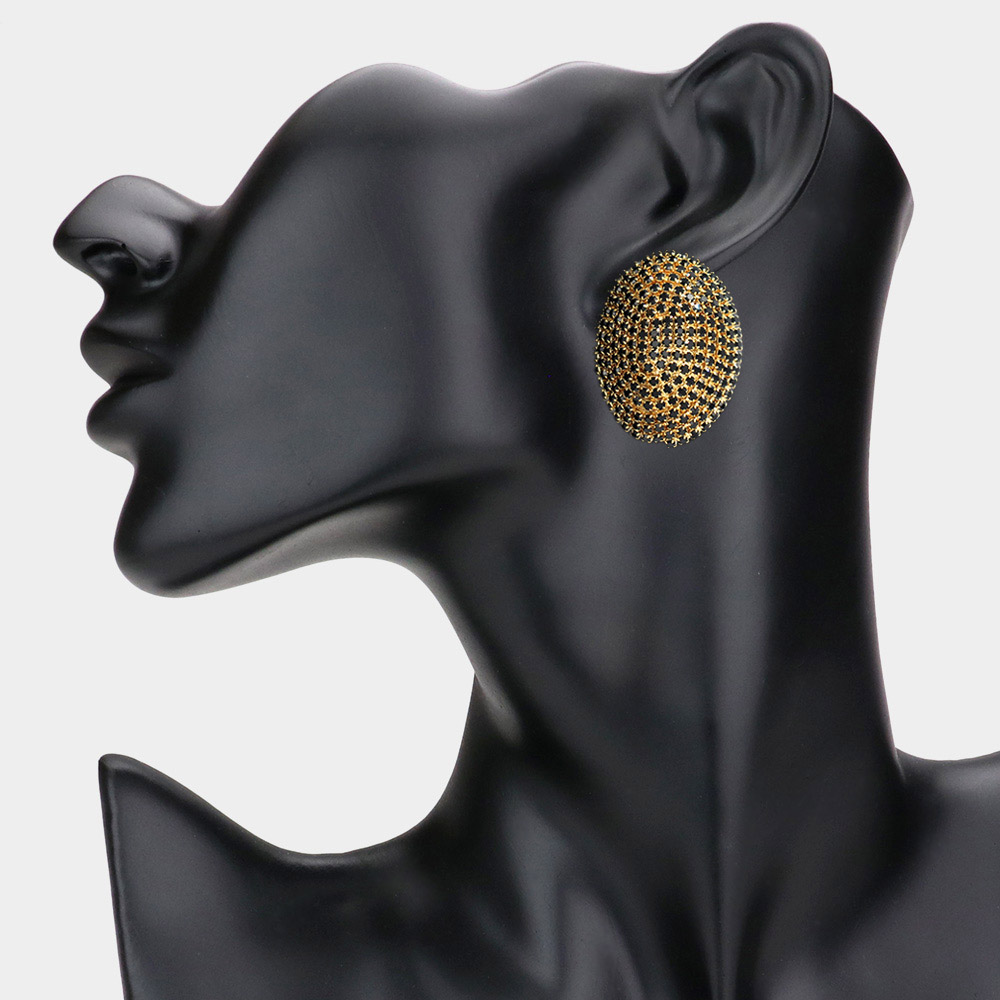 Stone Embellished Cutout Christmas Gift Brass Metal Round Dangle Earrings