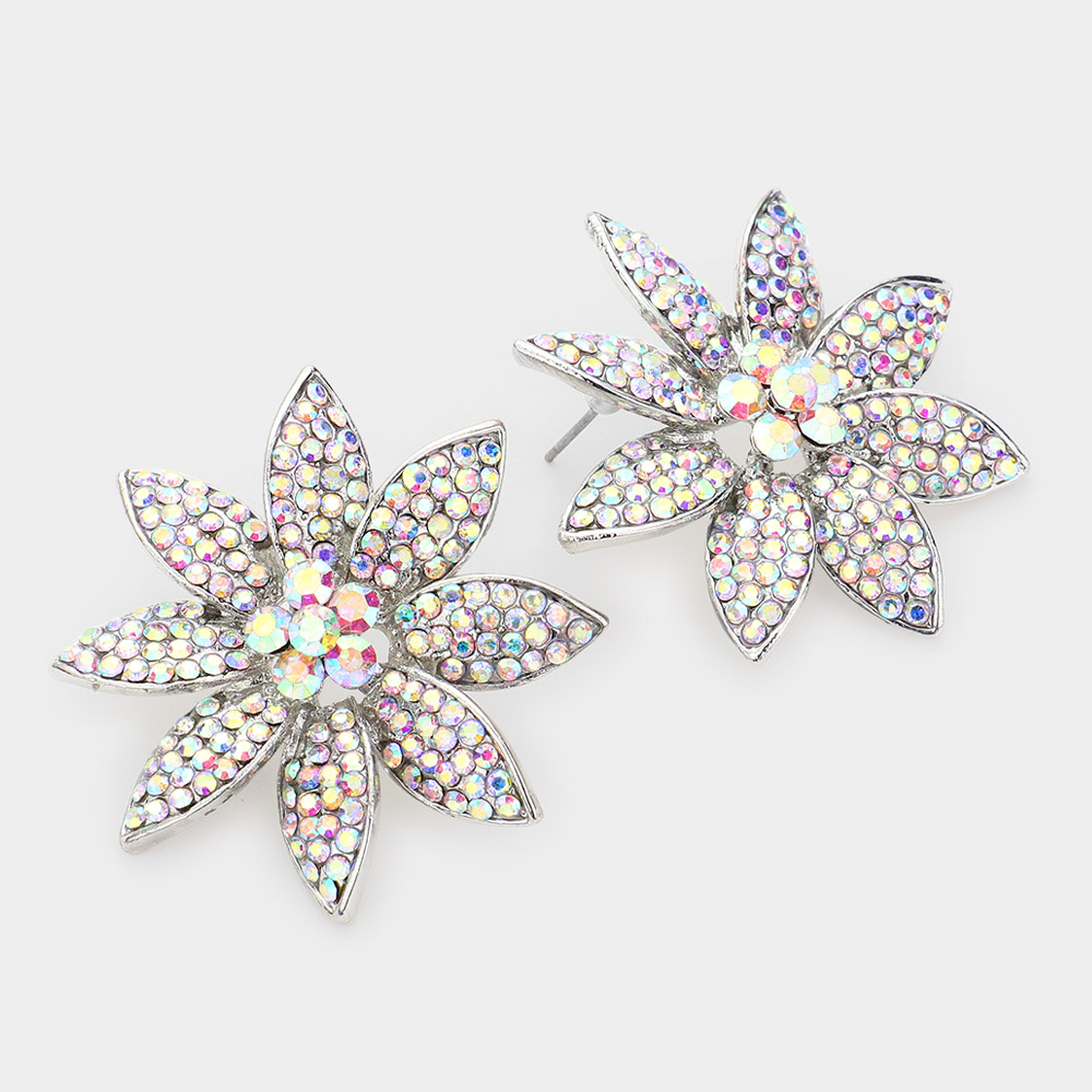 Bubble Stone Embellished Flower Evening Earrings