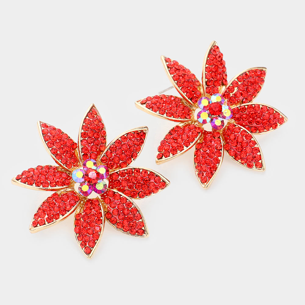 Rhinestone Paved Double Flower Link Drop Evening Earrings