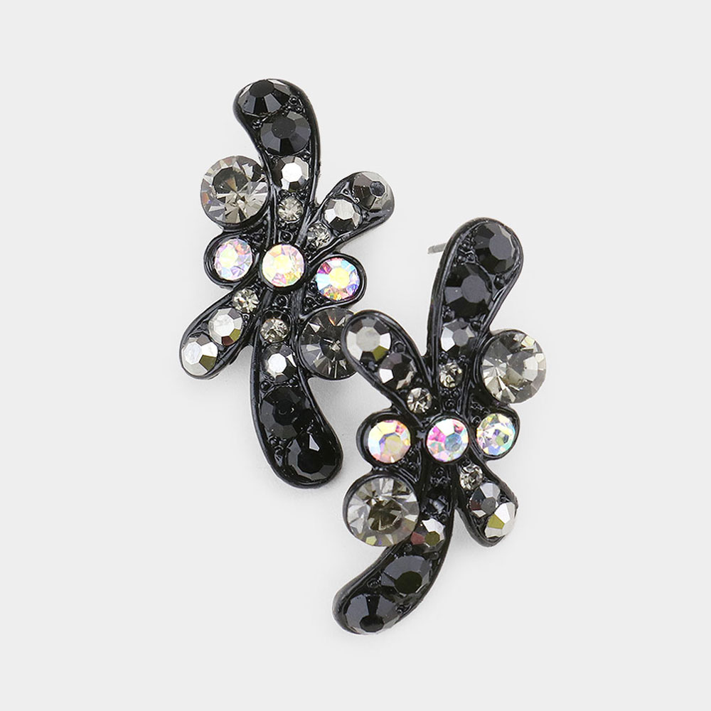 Rhinestone Embellished Feather Dangle Evening Earrings