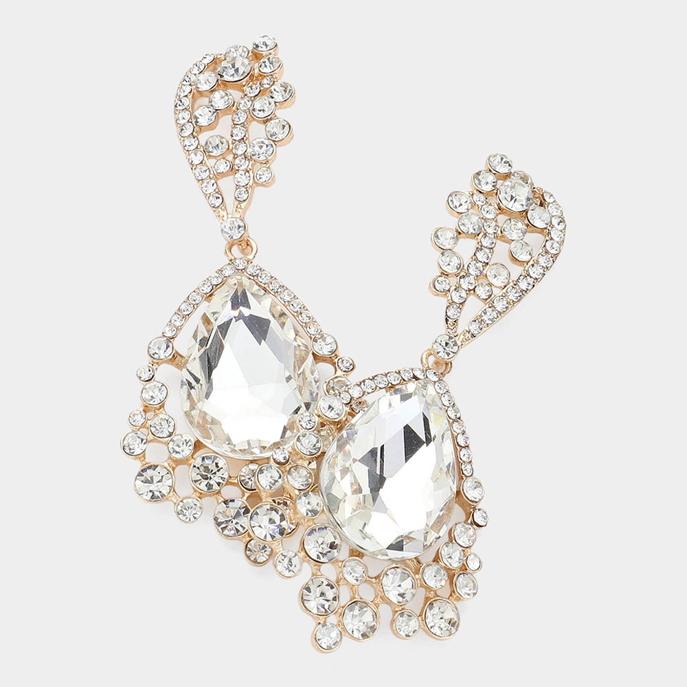 Chunky Crystal Rhinestone Teardrop Bubble Evening Earrings