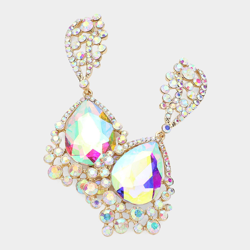 Marquise Stone Cluster Embellished Teardrop Stone Tip Dangle Drop Evening Earrings
