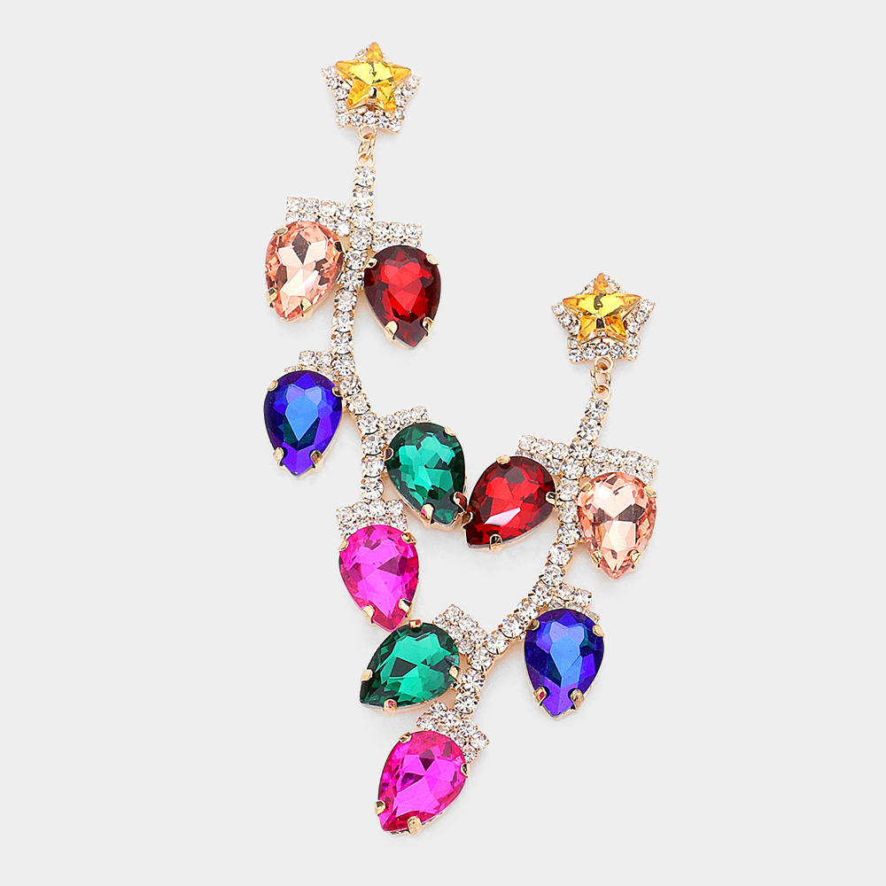 Teardrop Stone Cluster Pointed Chandelier Dangle Evening Earrings