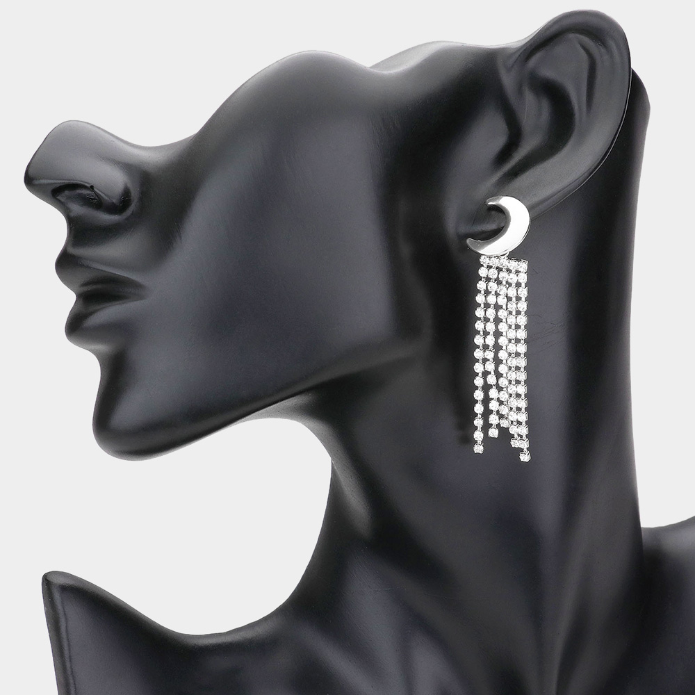 Round Stone Pointed Rhinestone Fringe Dangle Evening Earrings