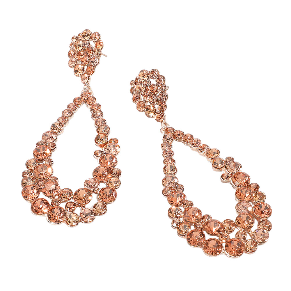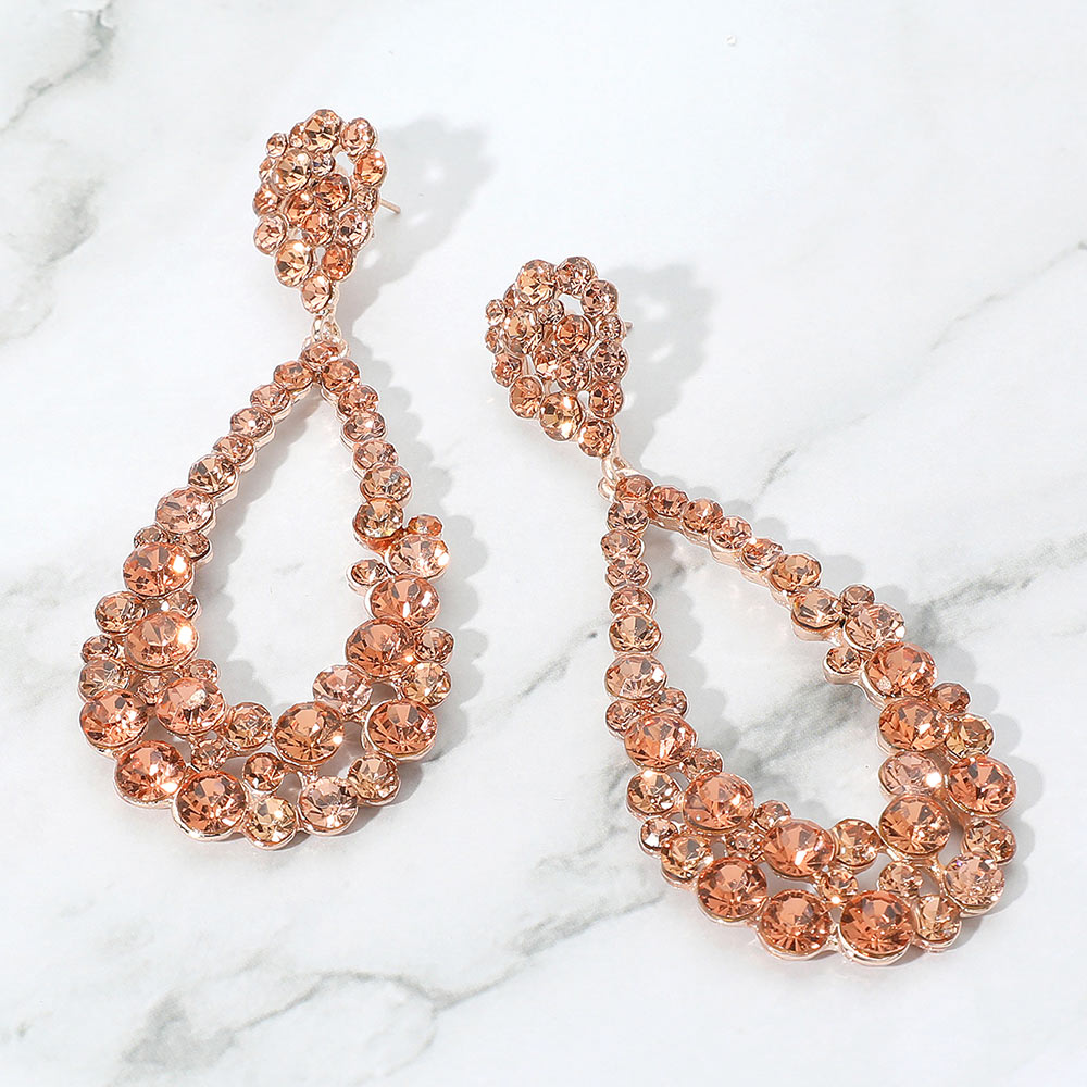 • Elegant teardrop crystal earrings featuring double-layered rhinestones. Perfect for weddings, proms, or evening events. Lightweight, eye-catching design for a glamorous finishing touch.