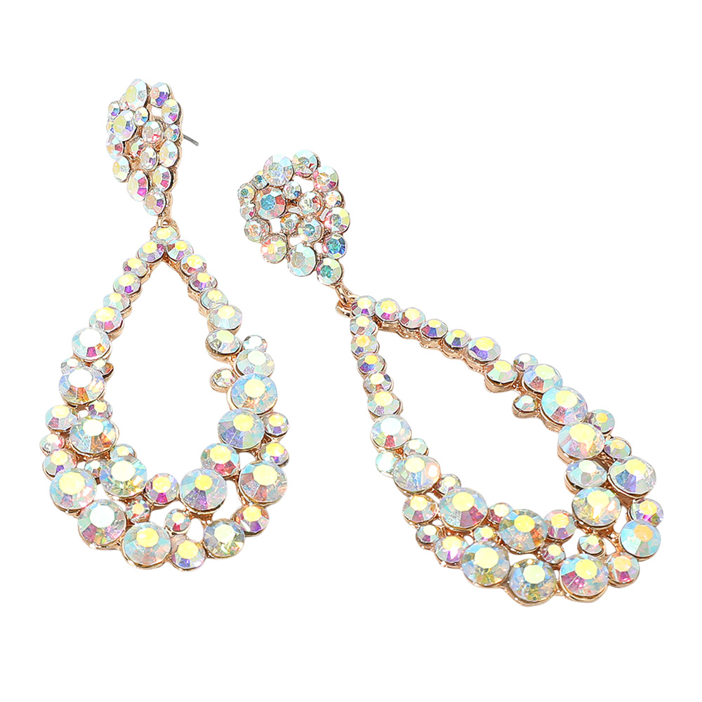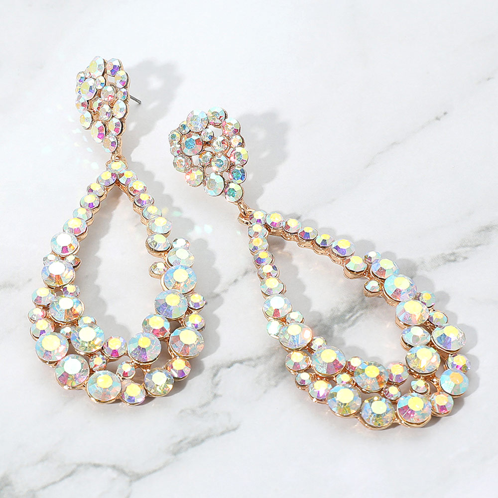 • Elegant teardrop crystal earrings featuring double-layered rhinestones. Perfect for weddings, proms, or evening events. Lightweight, eye-catching design for a glamorous finishing touch.