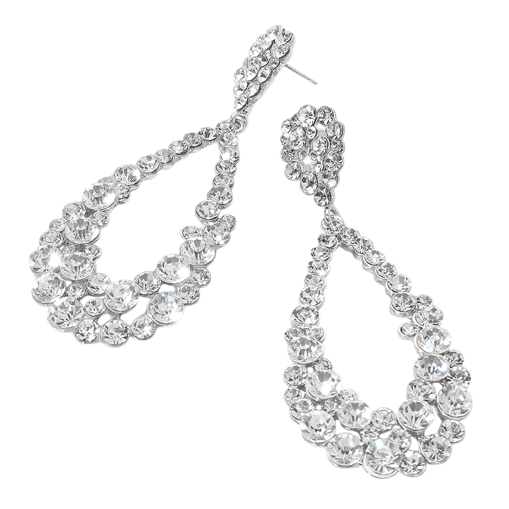 • Elegant teardrop crystal earrings featuring double-layered rhinestones. Perfect for weddings, proms, or evening events. Lightweight, eye-catching design for a glamorous finishing touch.