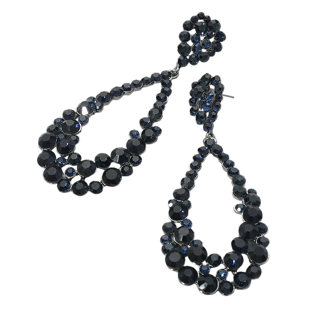Flower Teardrop Stone Cluster Dangle Evening Earrings