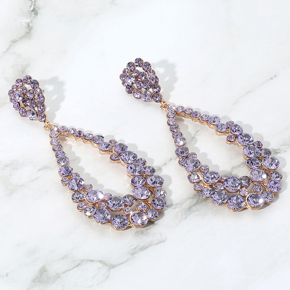 • Elegant teardrop crystal earrings featuring double-layered rhinestones. Perfect for weddings, proms, or evening events. Lightweight, eye-catching design for a glamorous finishing touch.