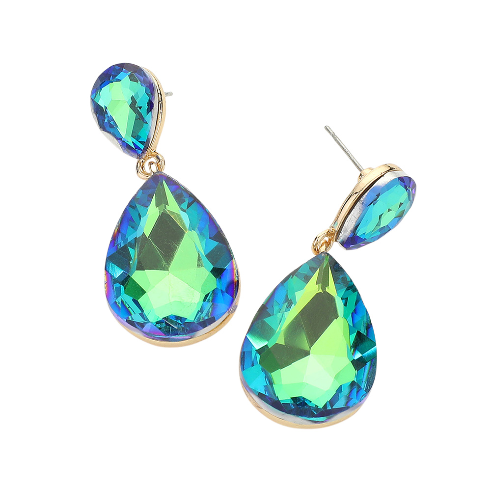 Triple Oval Glass Stone Drop Down Dangle Evening Earrings