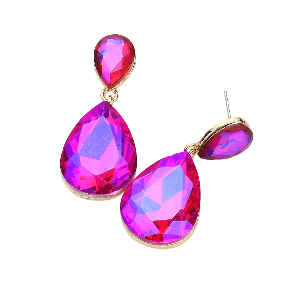 Rectangle Stone Cluster Open Heart Dangle Earrings