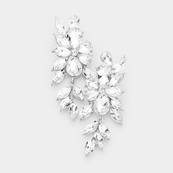 Crystal Rhinestone Marquise Dangle Evening Earrings