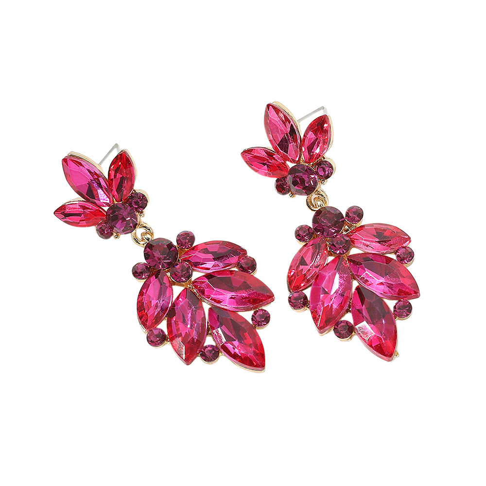 Teardrop Round Glass Stone Cluster Stretch Evening Bracelet