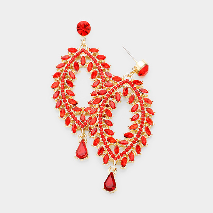 Teardrop Stone Cluster Dangle Evening Earrings
