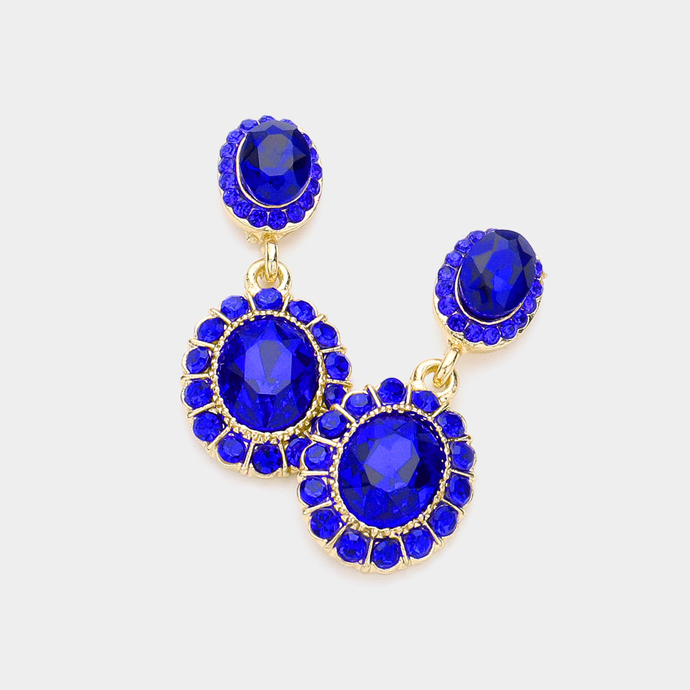 Triangle Stone Cluster Pointed Sequin Tassel Dangle Gameday Earrings