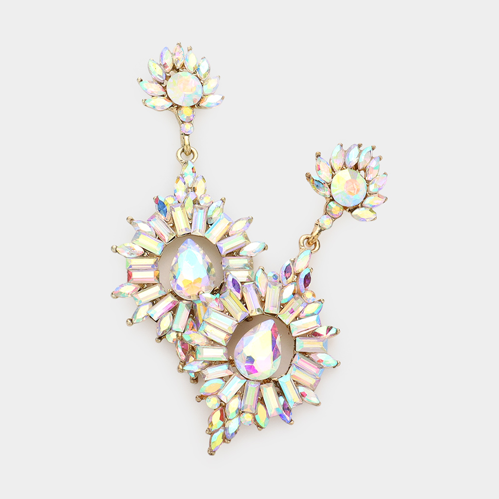 Rectangle Marquise Teardrop Stone Cluster Dangle Evening Earrings