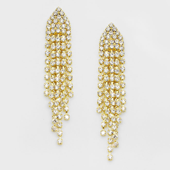 Rhinestone Cluster Flower Evening Clip On Earrings