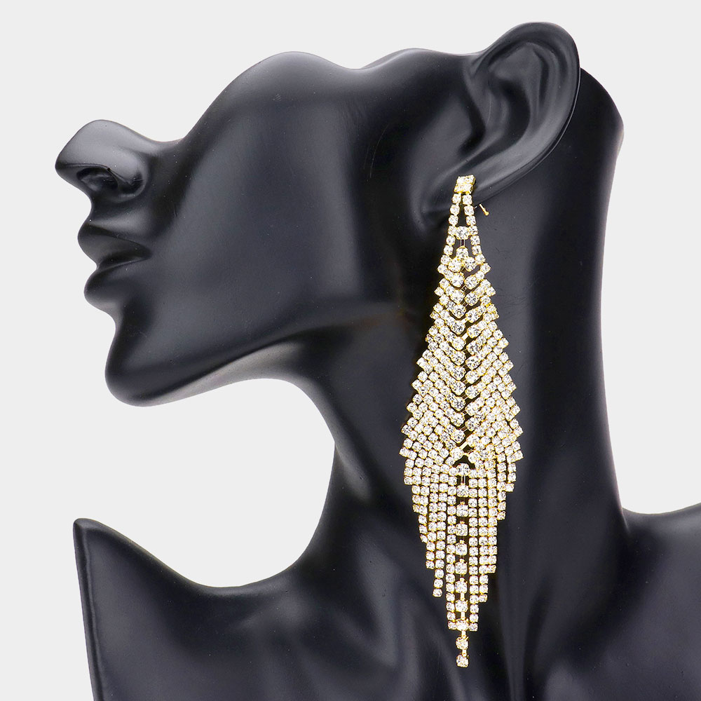 3Pairs - Round Stone Metal Hoop Tassel Fringe Earrings