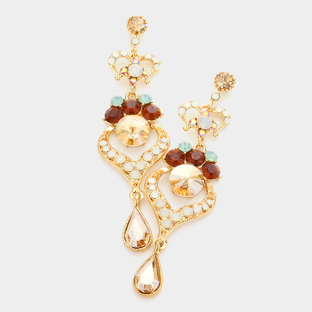 Crystal Rhinestone Heart Teardrop Dangle Evening Earrings