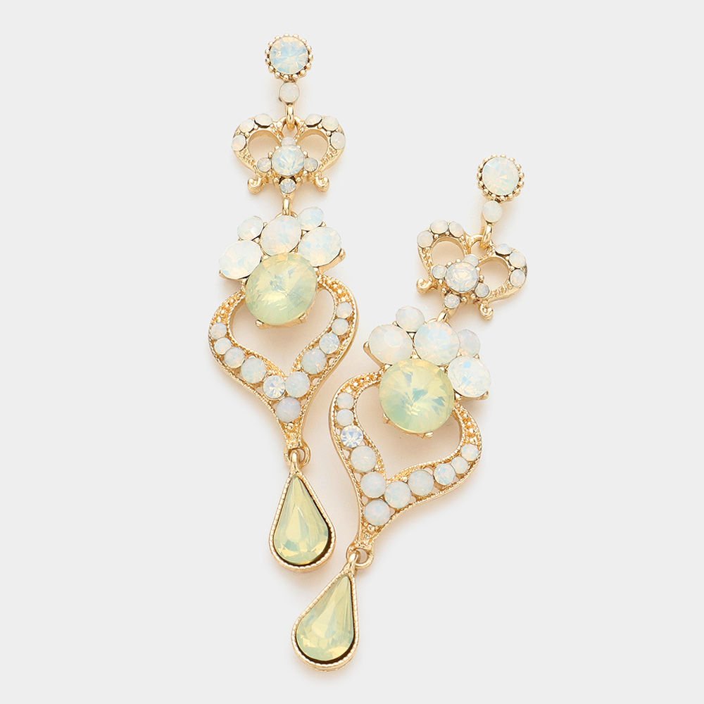 Crystal Rhinestone Heart Teardrop Dangle Evening Earrings