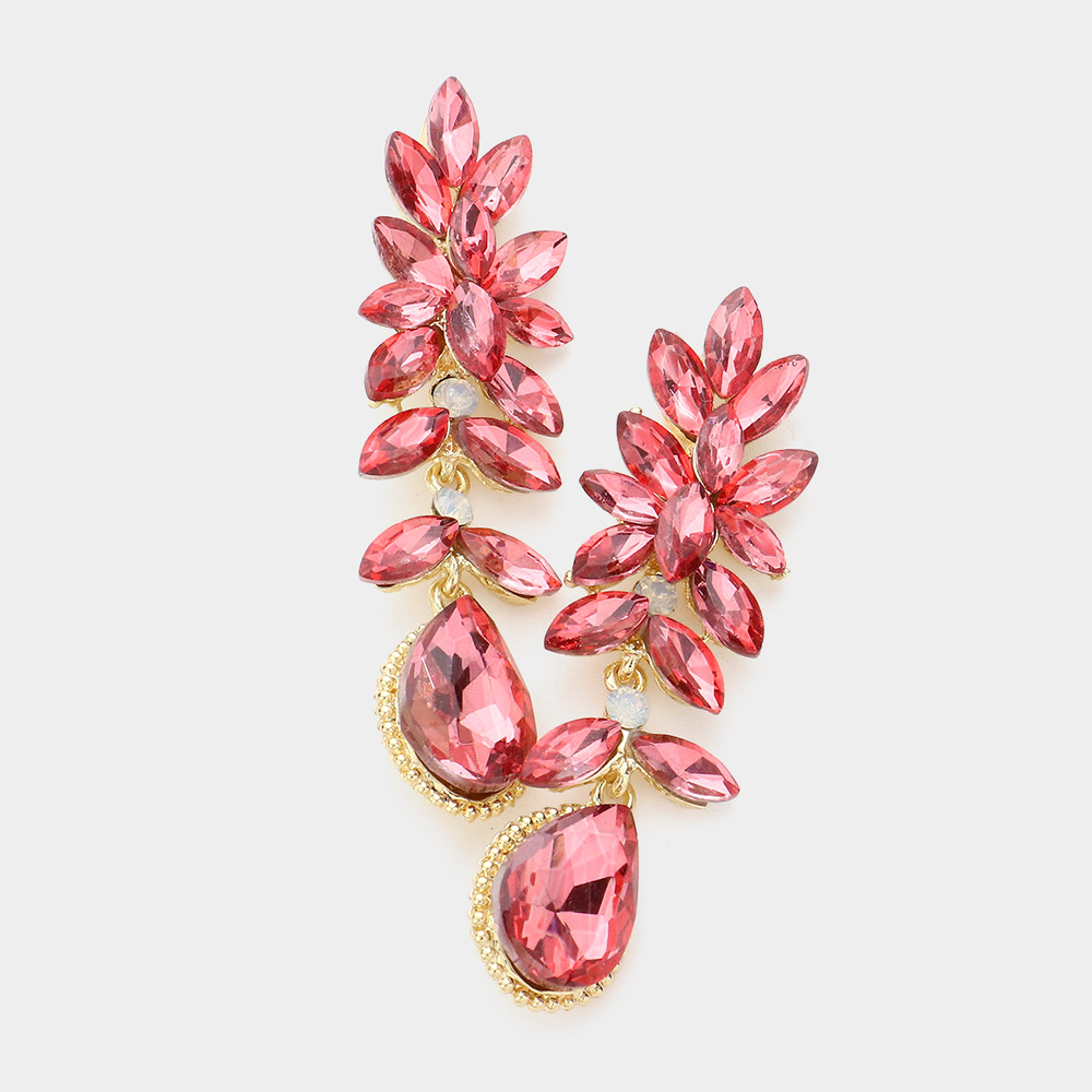 Faceted Long Beaded Open Marquise Fan Dangle Earrings