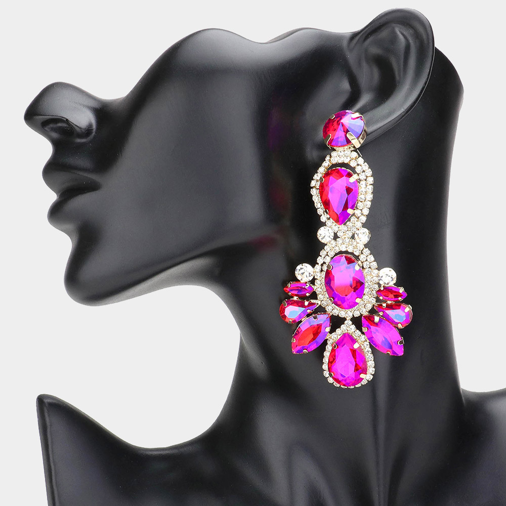 Crystal Rhinestone Pave Drop Evening Earrings