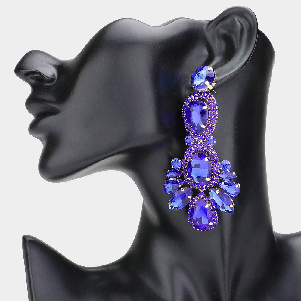 Teardrop Stone Cluster Embellished Dangle Evening Earrings