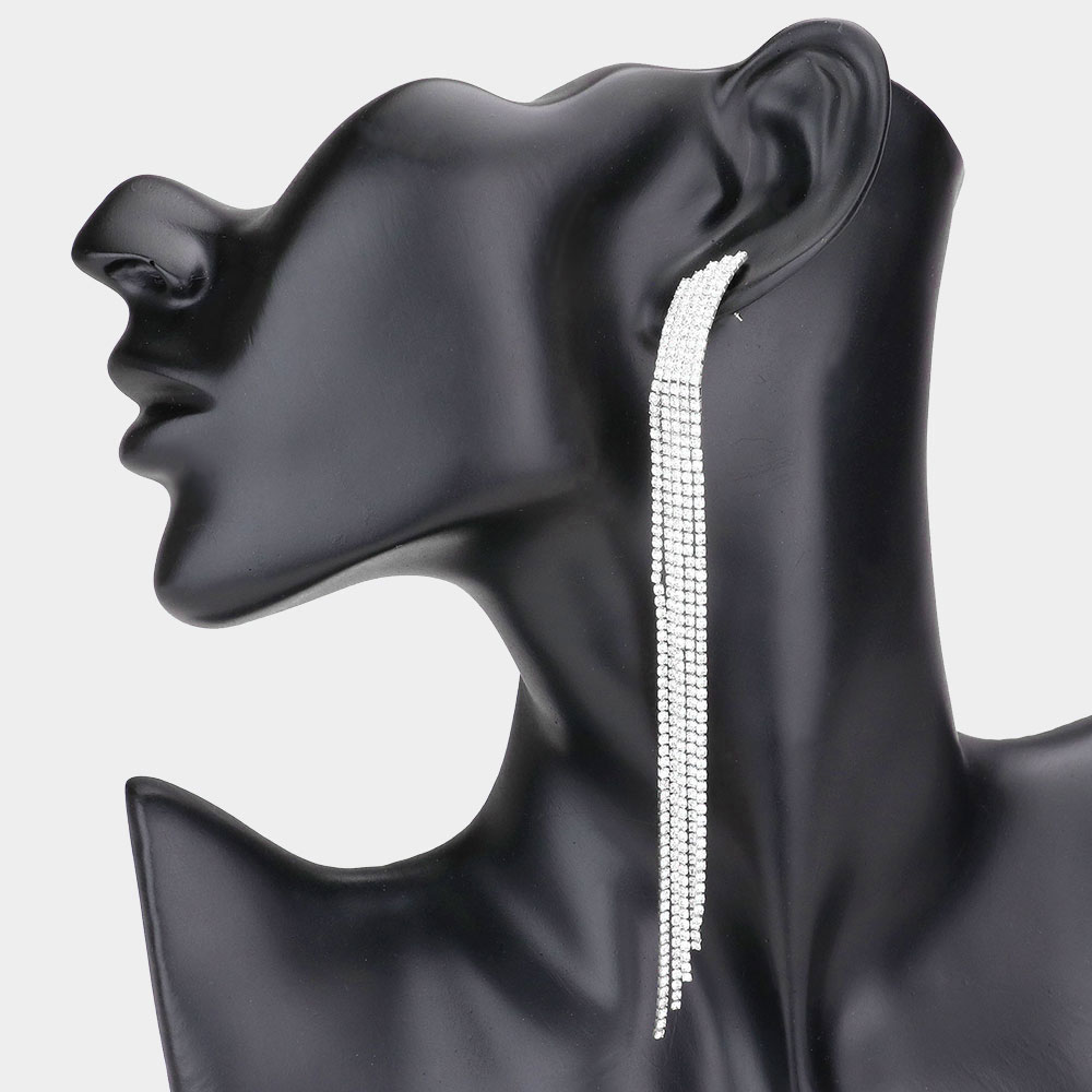 Crystal Rhinestone Pave Fringe Evening Earrings