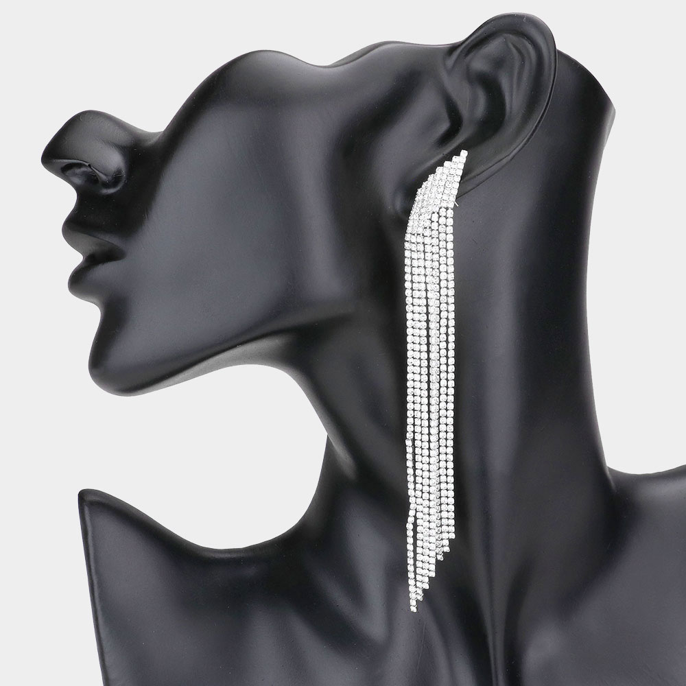Crystal Rhinestone Pave Fringe Evening Earrings