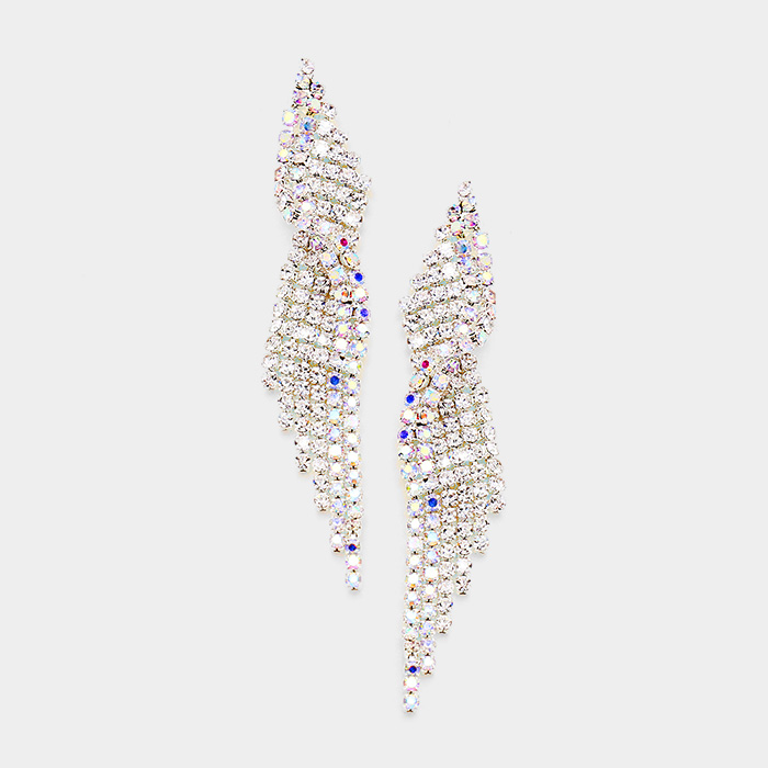 Crystal Rhinestone Pave Fringe Evening Earrings