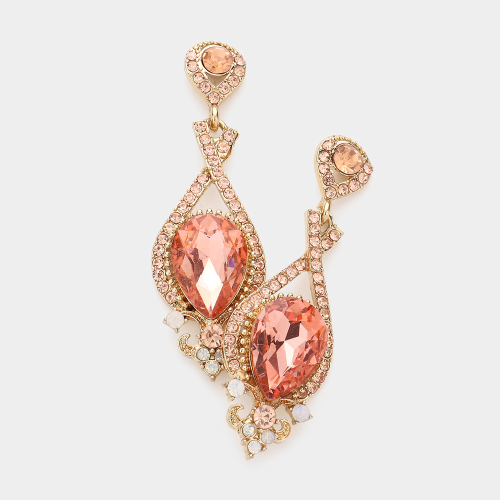 Marquise Teardrop Stone Cluster Dangle Evening Earrings
