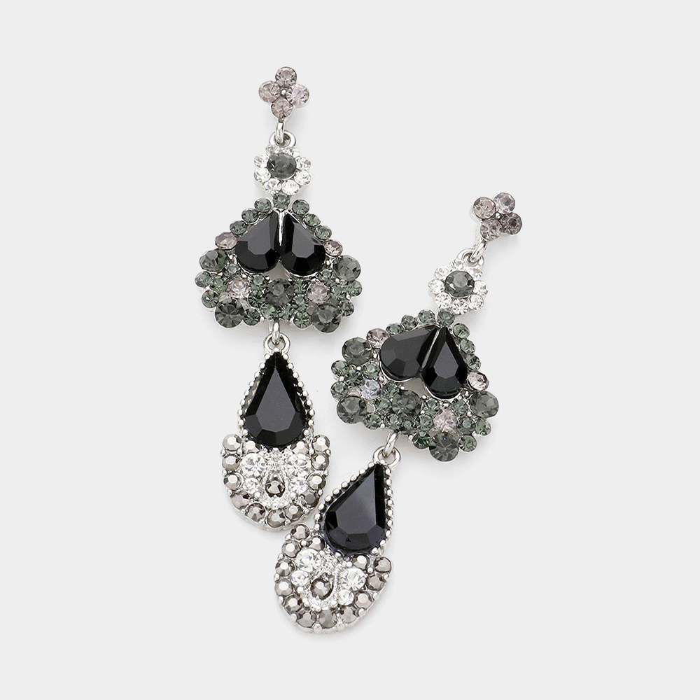 Crystal Rhinestone Teardrop Heart Evening Earrings
