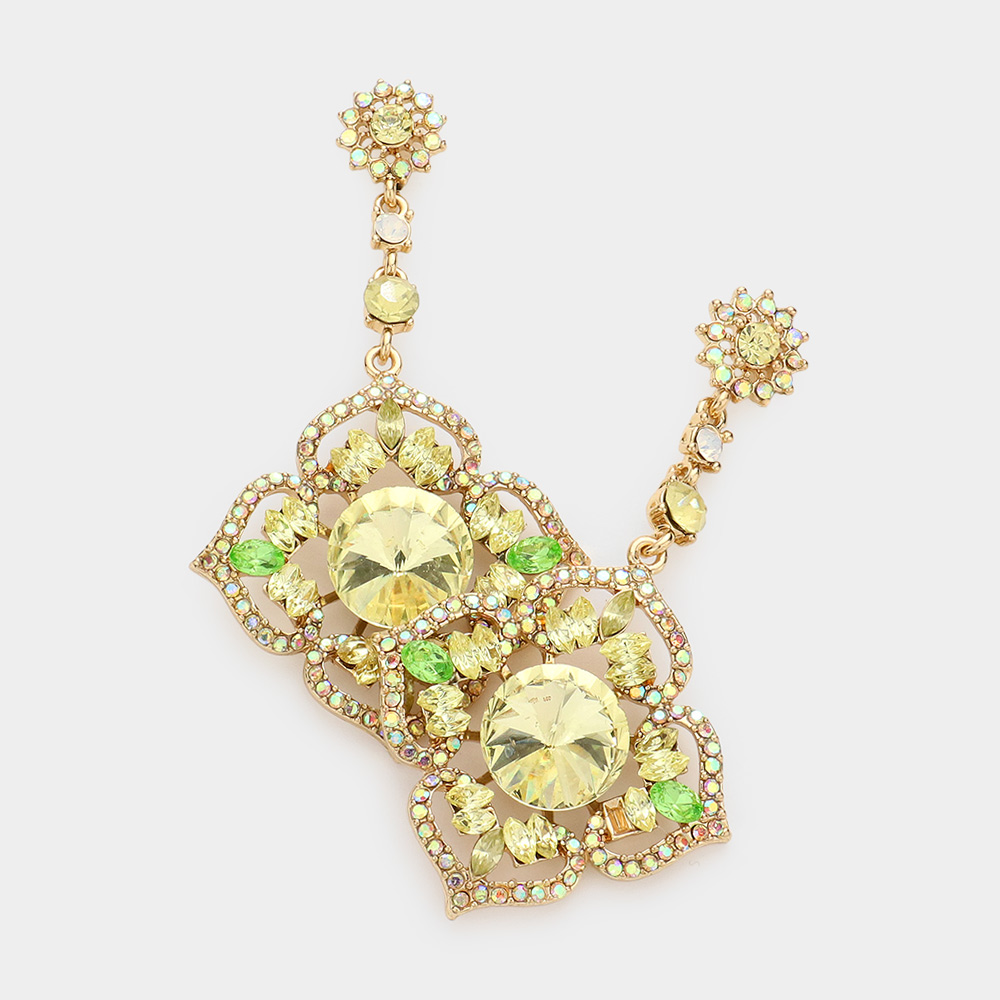 Crystal Rhinestone Trim Flower Evening Drop Earrings