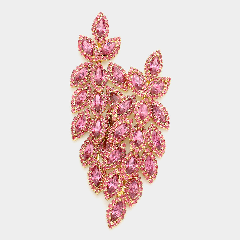 Crystal Stone Leaf Cluster Marquise Evening Earrings