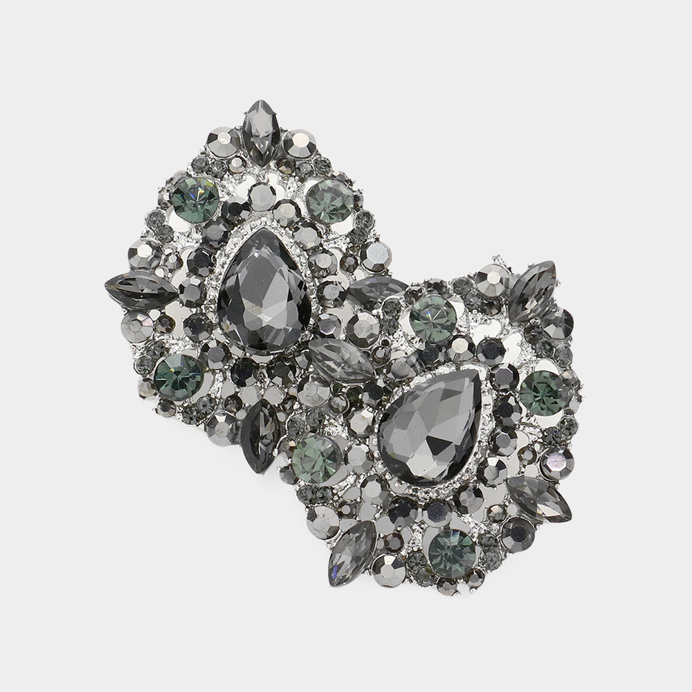 Multi Stone Floral Clip on Evening Earrings