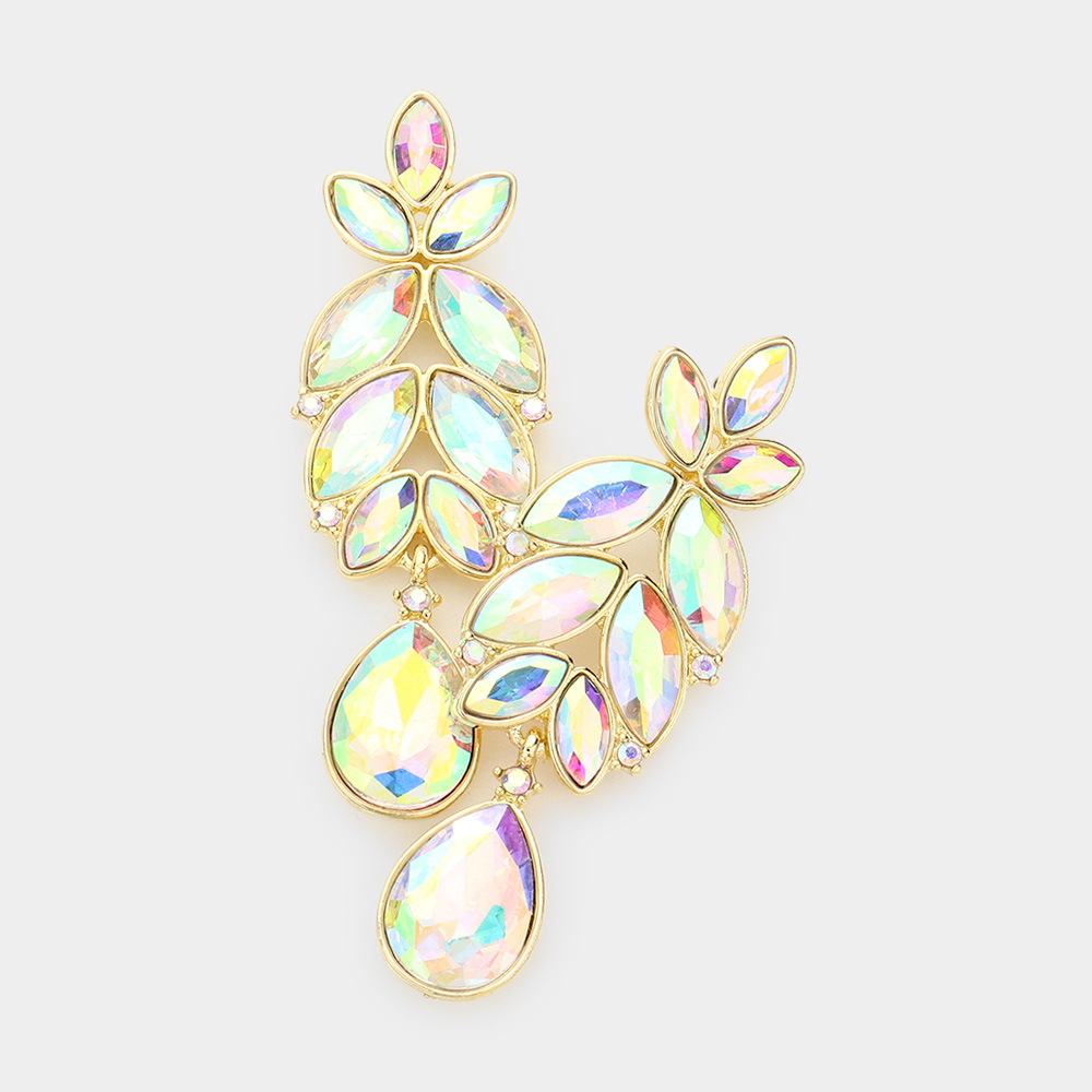 Crystal Teardrop Leaf Dangle Evening Earrings
