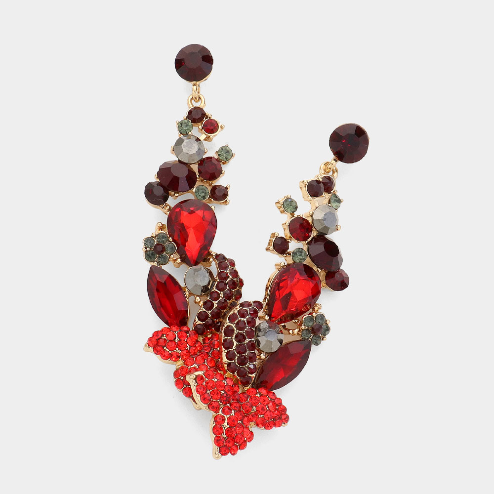 Crystal Teardrop Marquise Flower Drop Evening Earrings
