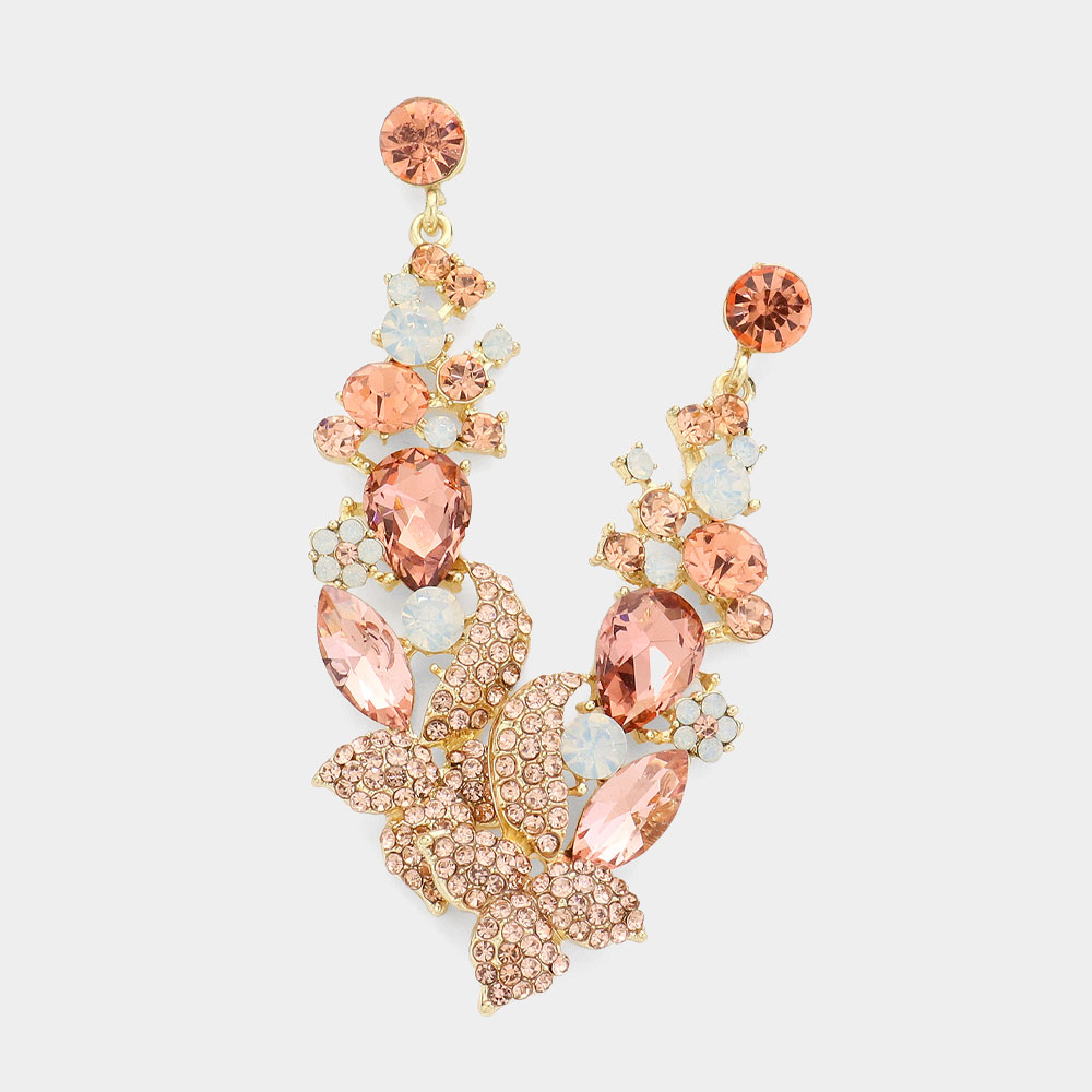 Crystal Teardrop Marquise Flower Drop Evening Earrings