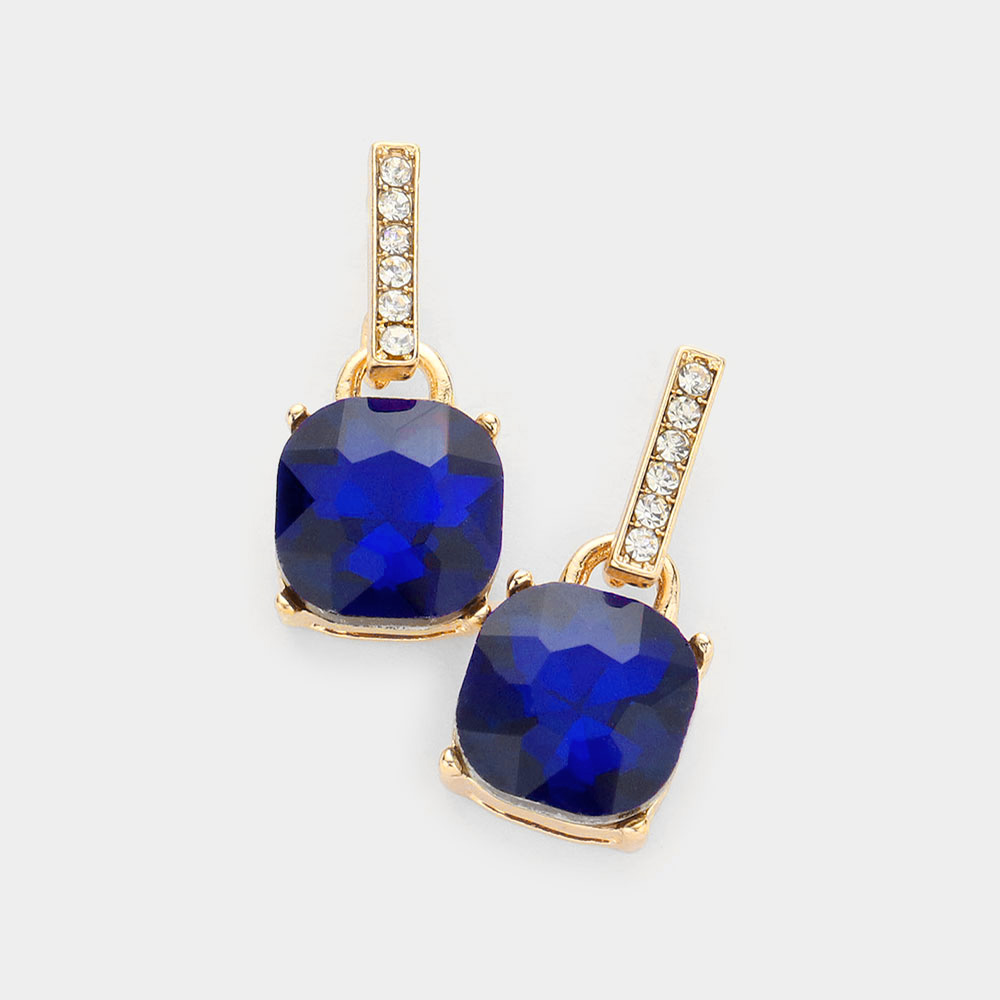 • These elegant drop earrings feature a faceted centerpiece and shimmering crystal accents for added glamour. Perfect for weddings, parties, or everyday sophistication, they add charm and sparkle to any look.
