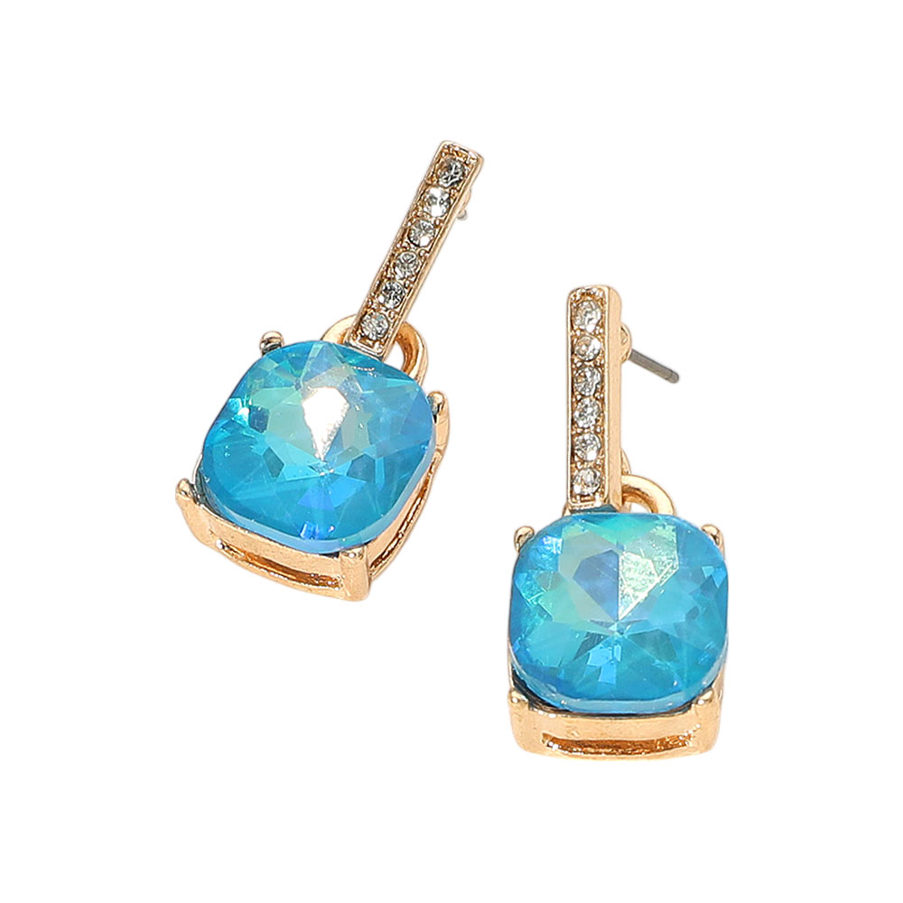Cushion Square Stone Dangle Evening Earrings