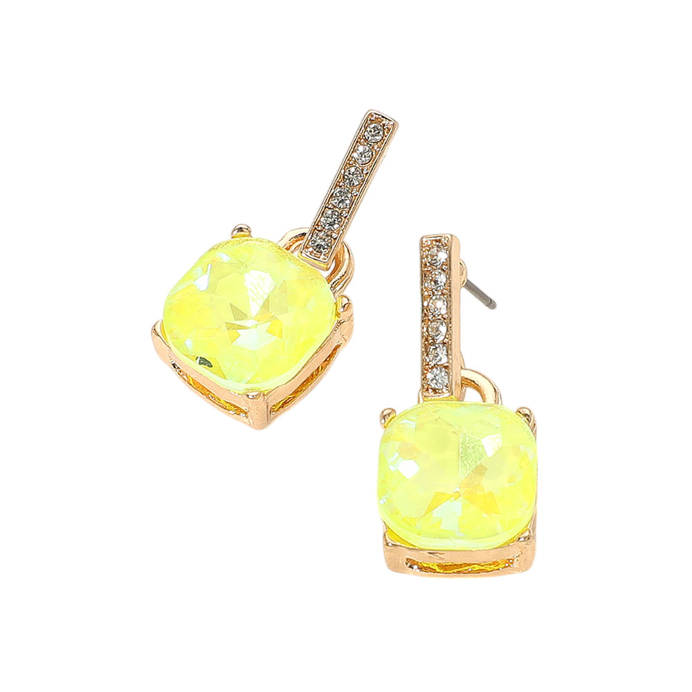 Cushion Square Stone Dangle Evening Earrings Cushion Square Stone Dangle Evening Earrings