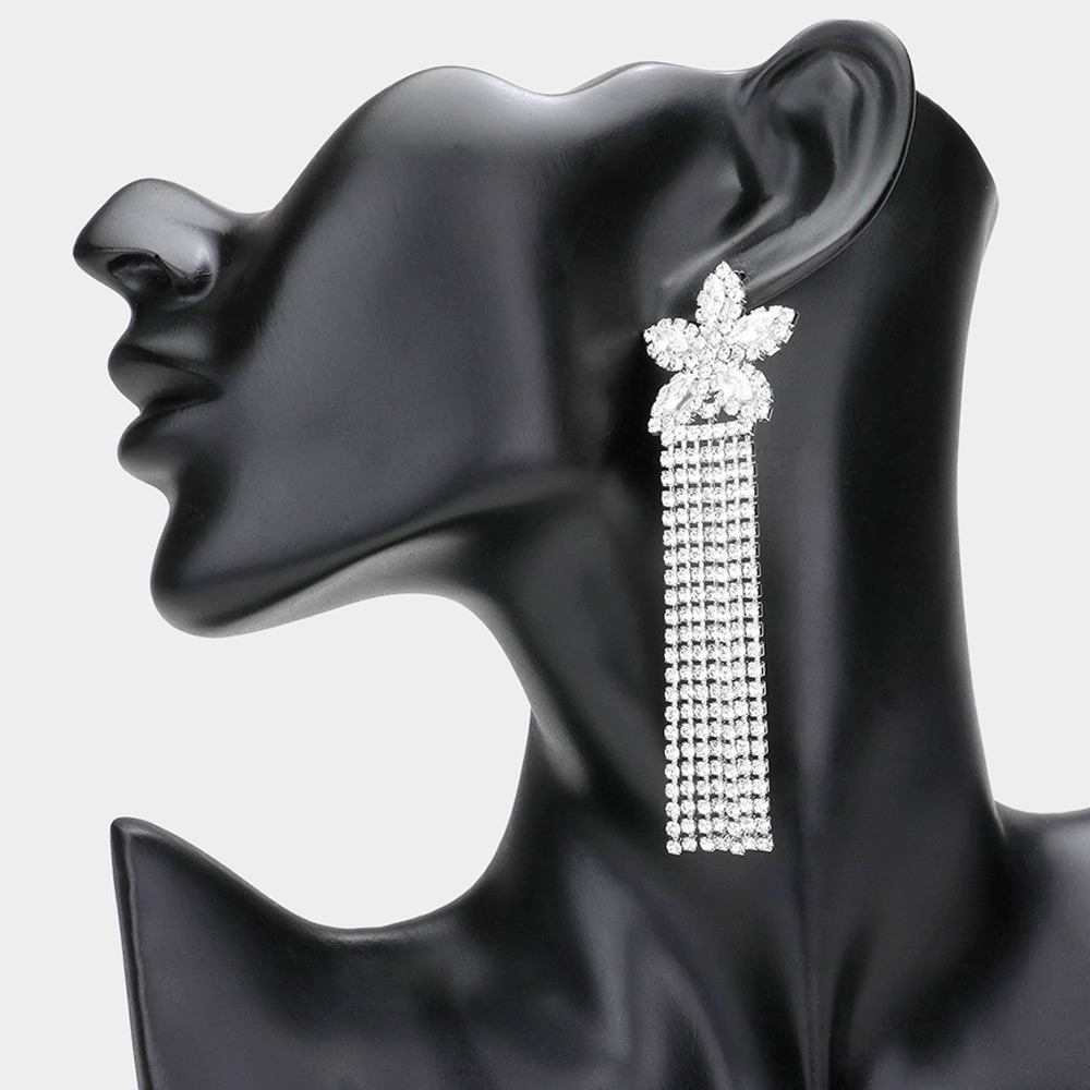 CZ Flower Pointed Fringe Dangle Evening Earrings